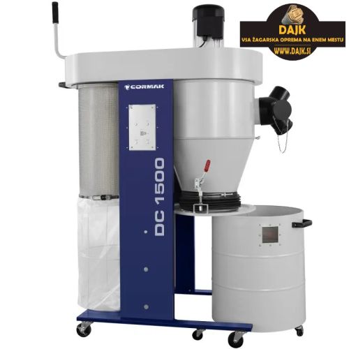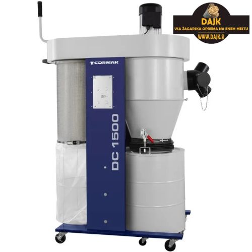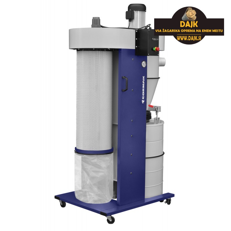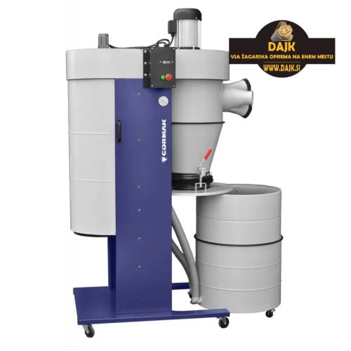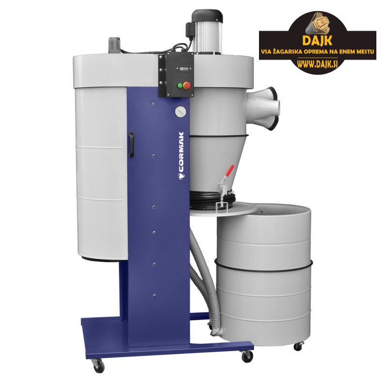 Odsesovalni ciklon DC3300 je namenjen odstranjevanju mokre in težke žagovine. Sistem dvojne filtracije zagotavlja večjo učinkovitost v primerjavi z enostopenjsko napravo, zagotavlja stalno odsesavanje in visoko zmogljivost naprave. Naprava ima samodejno stresanje filtra za prah, manometer, zmogljiv in tih centrifugalni ventilator pa zagotavlja visoko moč vakuuma. Sesalno moč med 2000m3/h in 7000 m3/h zagotavlja 3 fazni 3kW elektro motor.