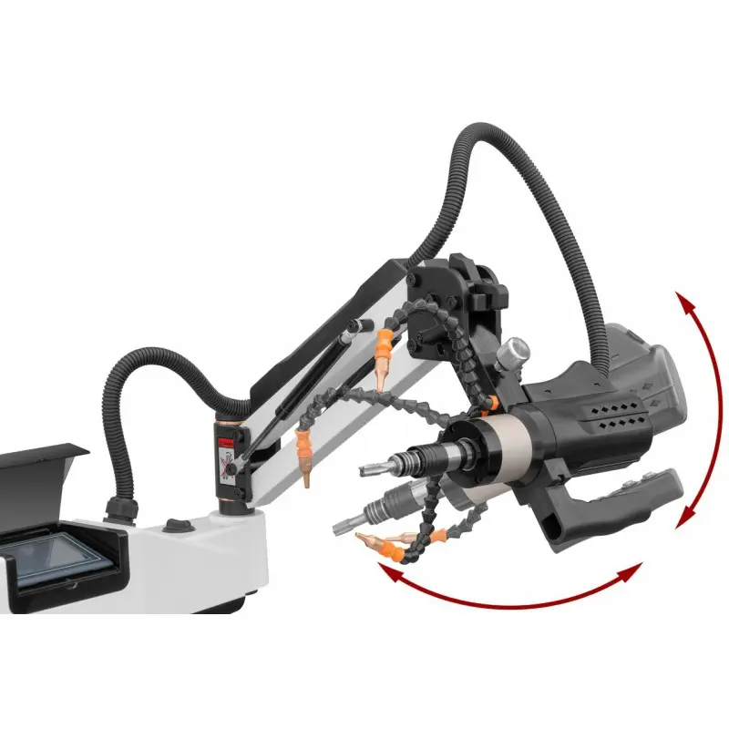 Stroj za vrezovanje navojev RG36PW je opremljen z dozirnikom olja in puhalom za odpihovanje ostružkov. Stroj ima nadzorno ploščo na dotik z menijem v angleščini in drugih jezikih. Navojna roka ima 2 načina delovanja: avtomatski in ročni.